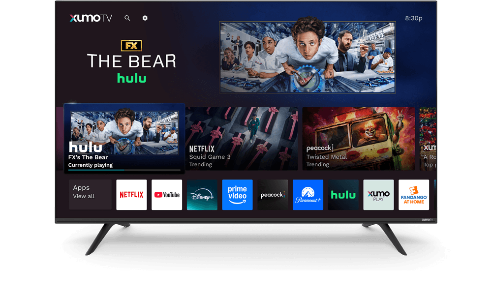 Screen images for illustration. Actual screen may vary. Actual remote may vary. Separate subscriptions are required to view content through various paid applications. Terms apply. Xumo, Xumo Play, Xumo Stream Box, and all other Xumo product names, logos, slogans or marks are the trademarks of Xumo or its licensors. ©2025 Xumo. Services subject to all applicable service terms and conditions, subject to change. Services not available in all areas. Restrictions apply.